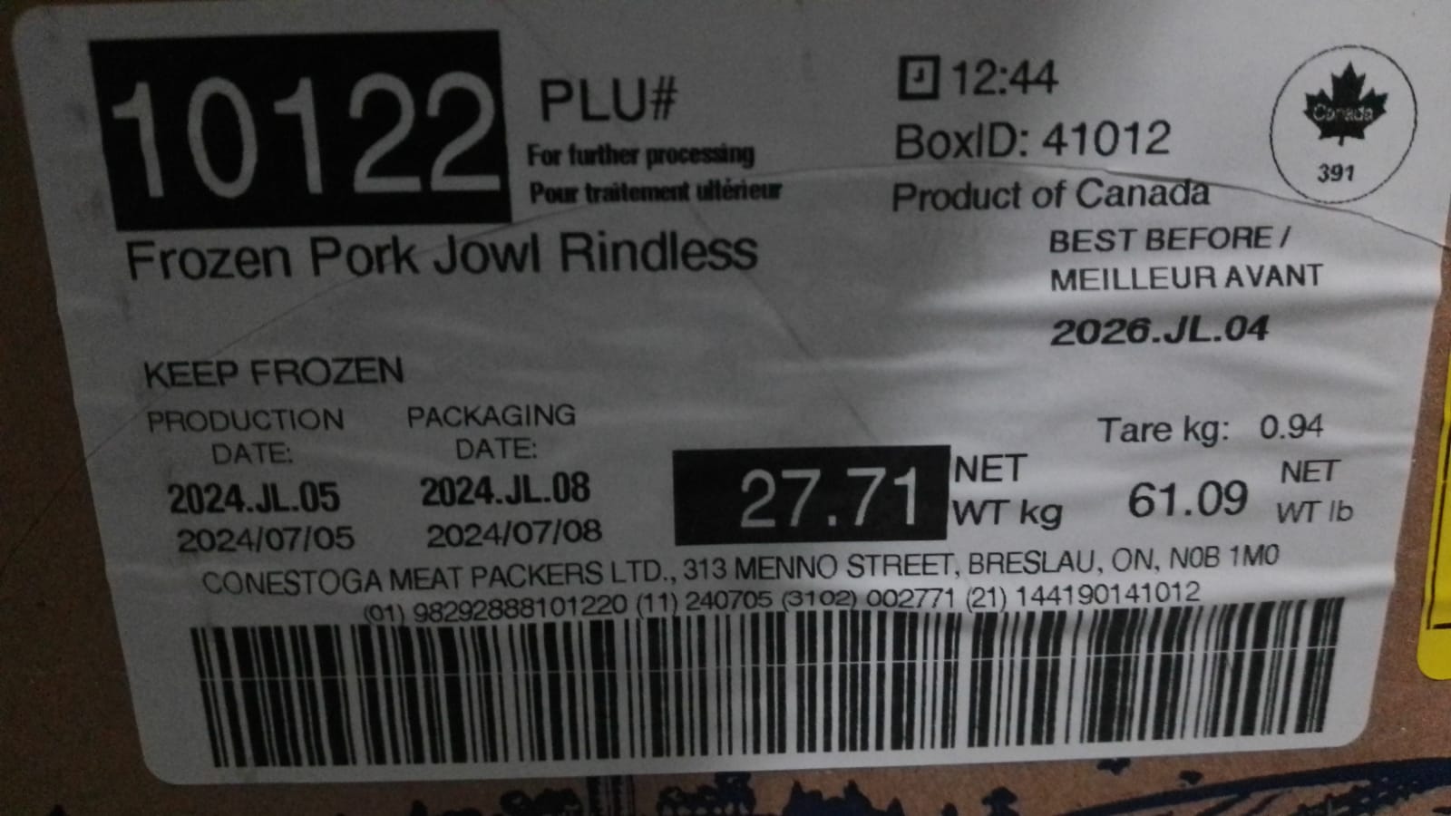 Pesos bruto po caja: