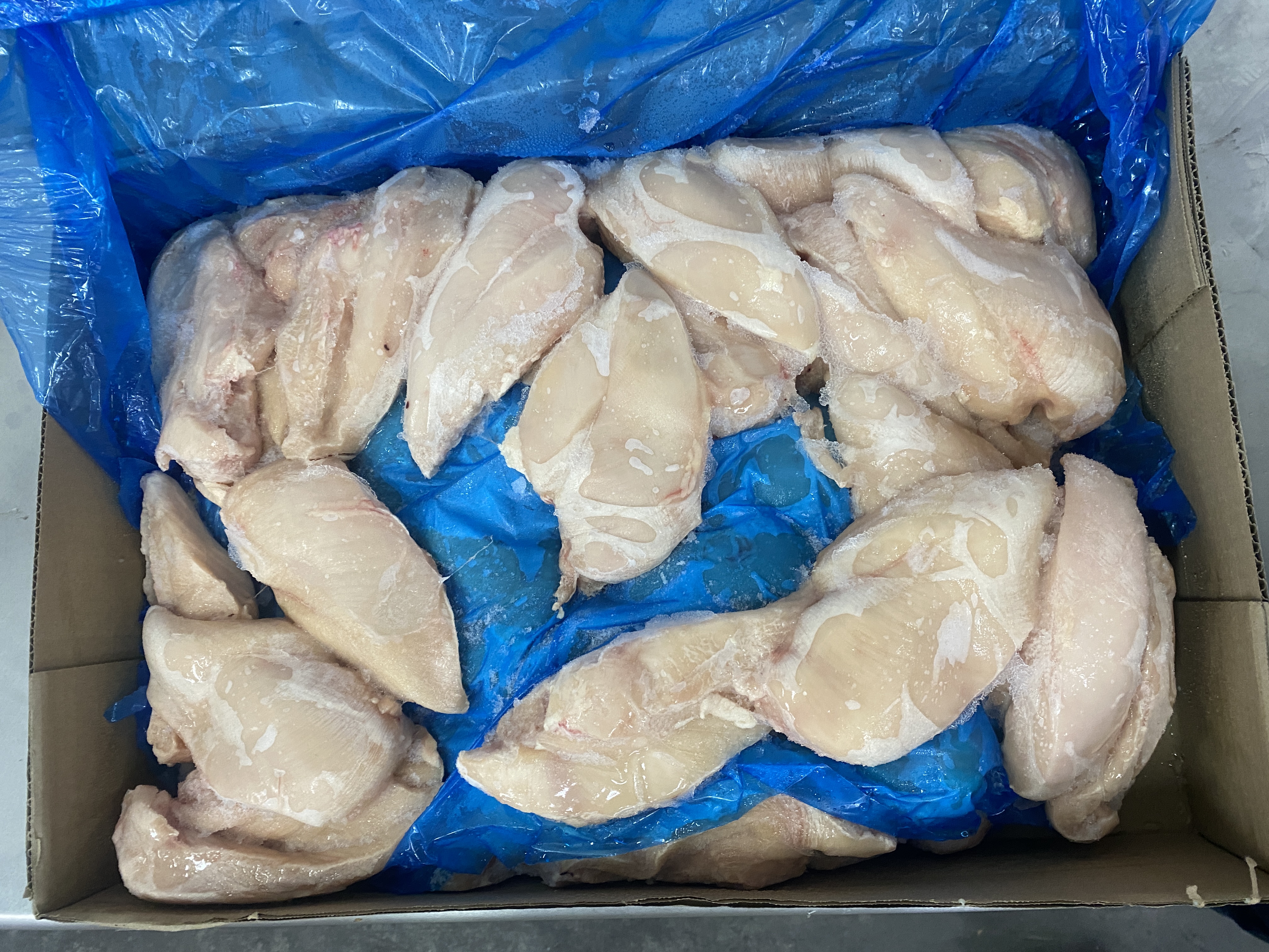 Pechuga sin hueso y piel se obtiene de separar la pechuga de la canal de pollo. Se separan las alas, el costillar y se le quita la piel.