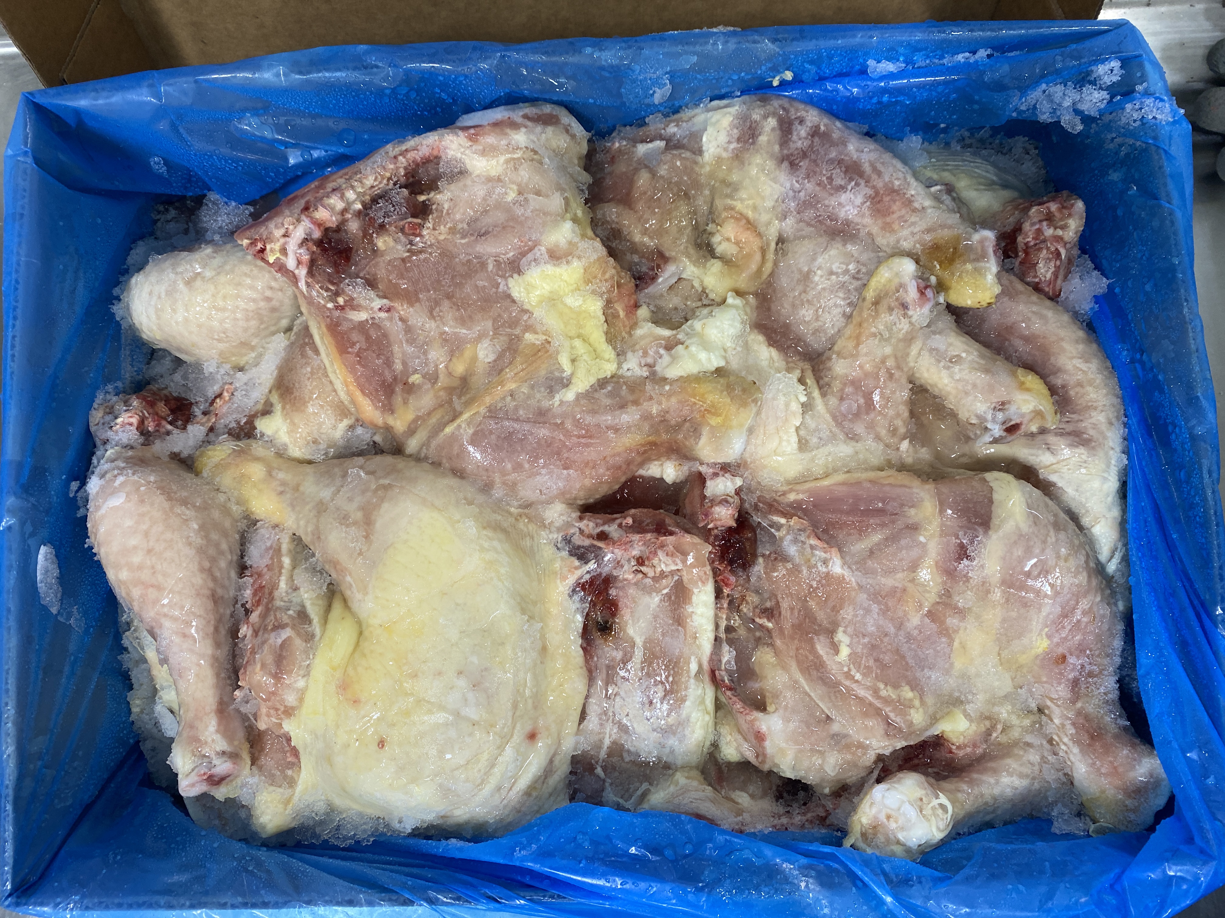 Corte americano con rabadilla de carne oscura, jugosa y tierna, que incluye muslo (contramuslo), la pierna (pierna inferior) hueso y piel, con un peso reducido por pieza.